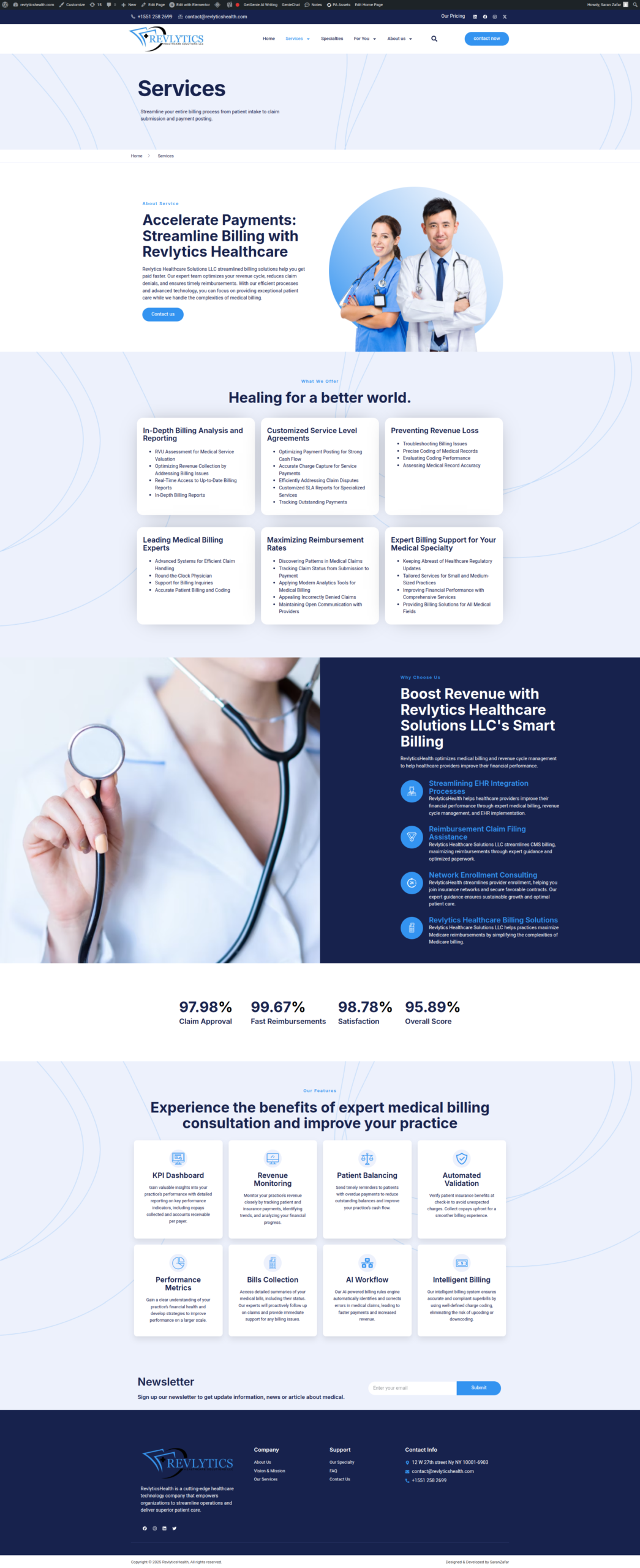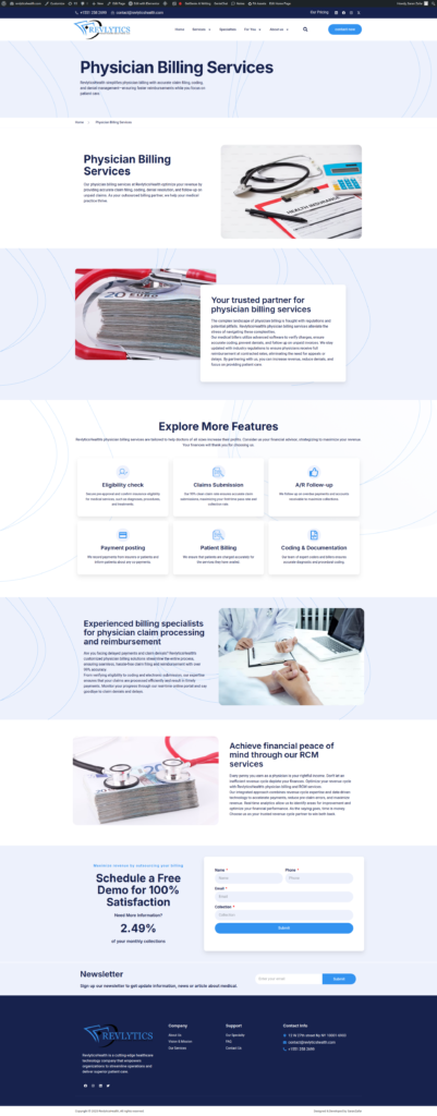Revlytics Health required a modern, professional website to clearly communicate its healthcare analytics solutions and establish a strong digital presence. The goal was to deliver a clean, trustworthy, and responsive platform that aligns with healthcare industry standards while remaining easy to navigate for diverse audiences.
