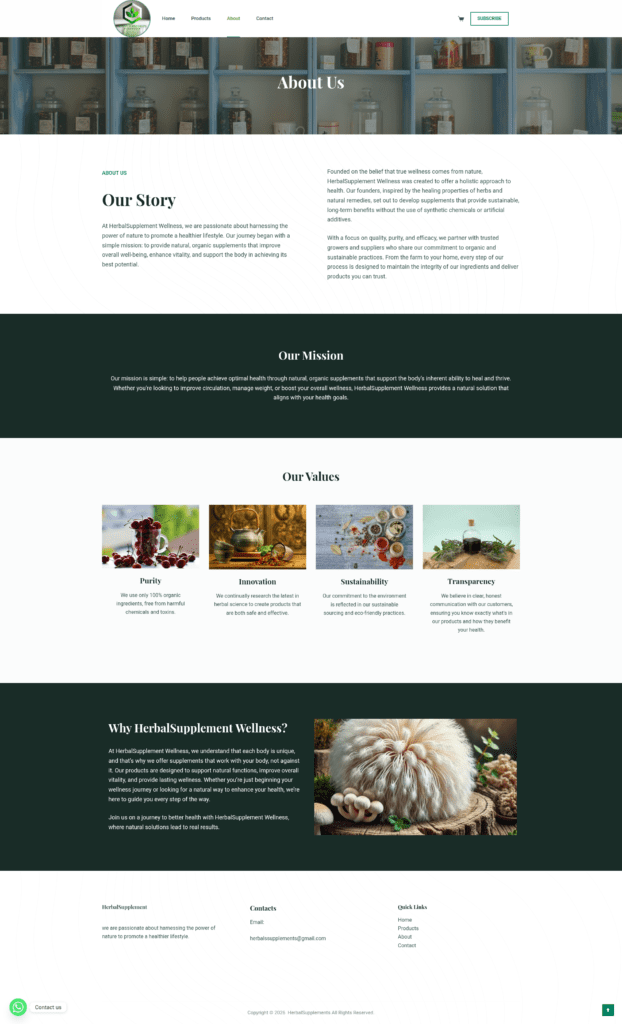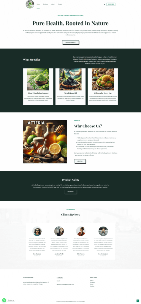 Herbals Supplements required a clean and straightforward website to present its products and brand information in a clear and accessible way. The objective was to implement a simple, responsive WordPress website that focuses on usability, readability, and fast performance.